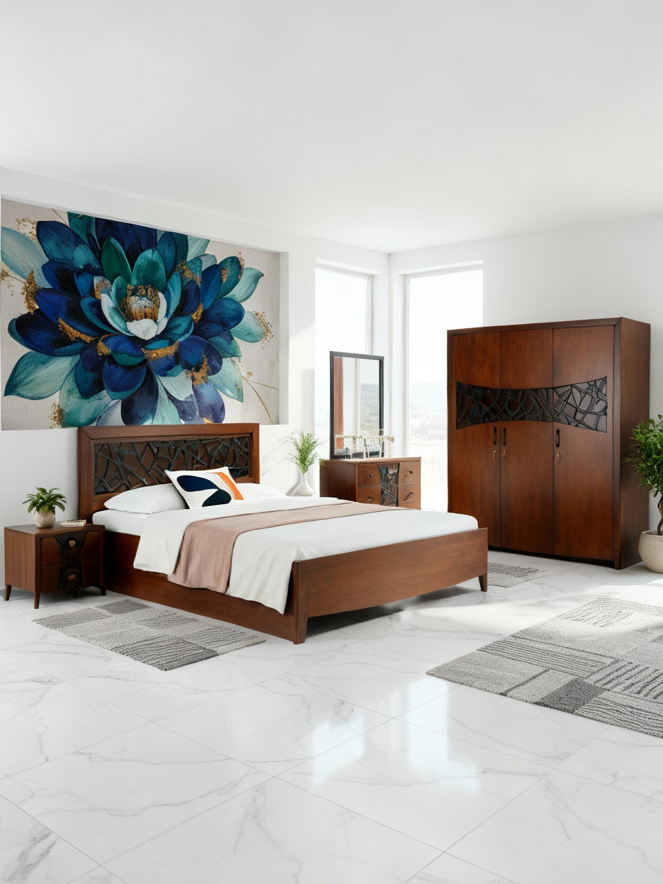 A modern and durable 5-piece bedroom furniture collection designed to deliver comfort, functionality, and cohesive style.