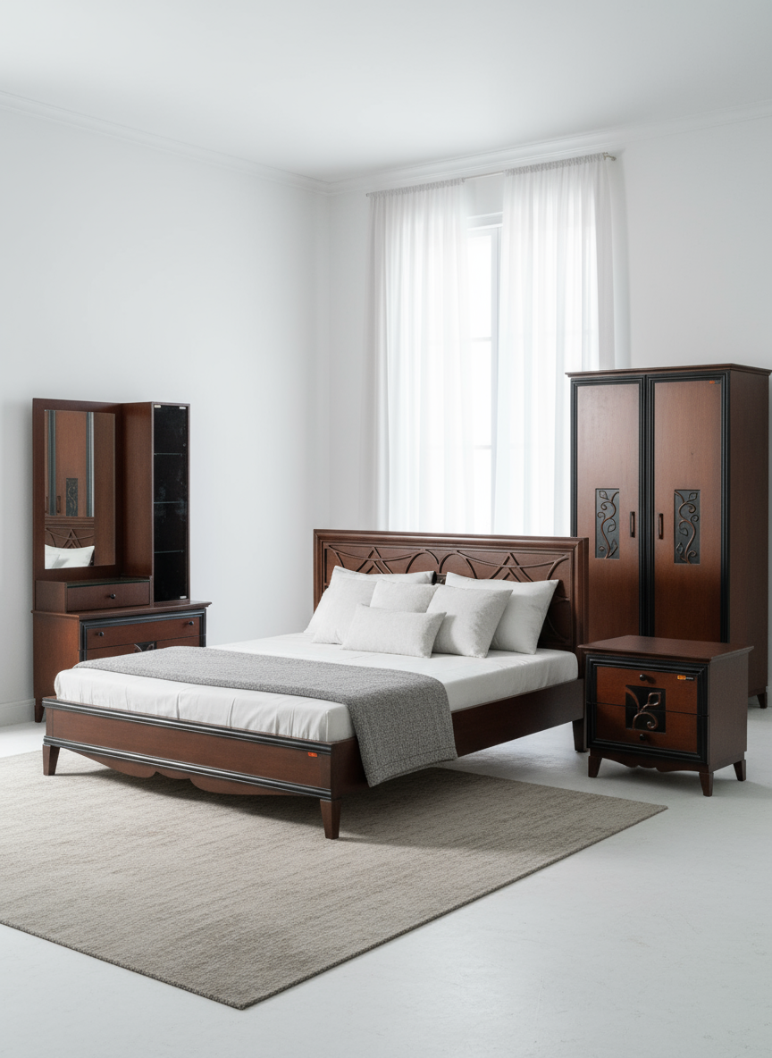 A modern and durable 5-piece bedroom furniture collection designed to deliver comfort, functionality, and cohesive style.