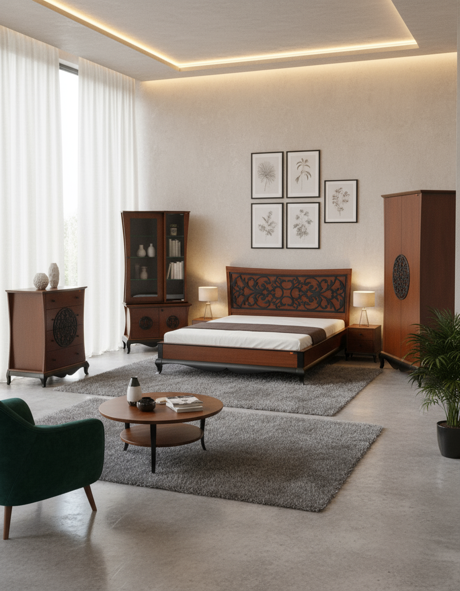 A modern and durable 5-piece bedroom furniture collection designed to deliver comfort, functionality, and cohesive style.